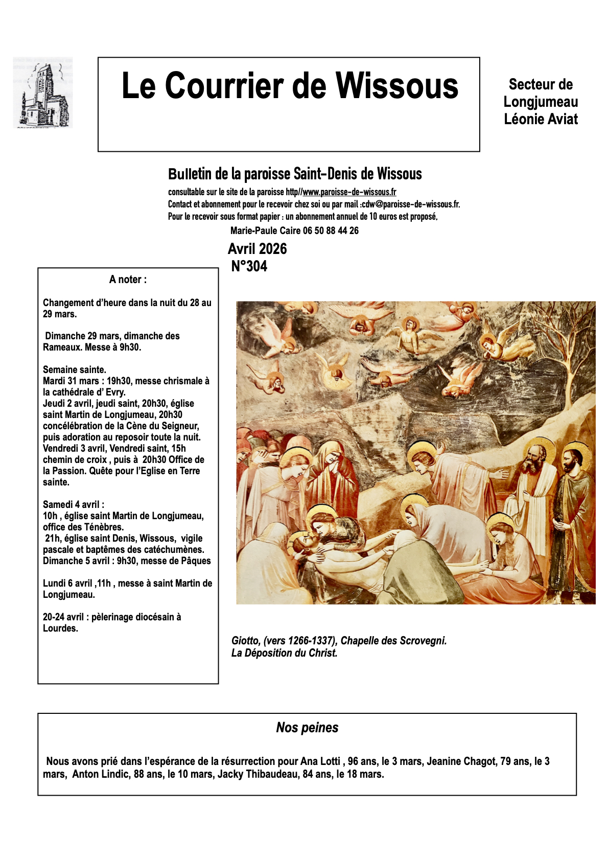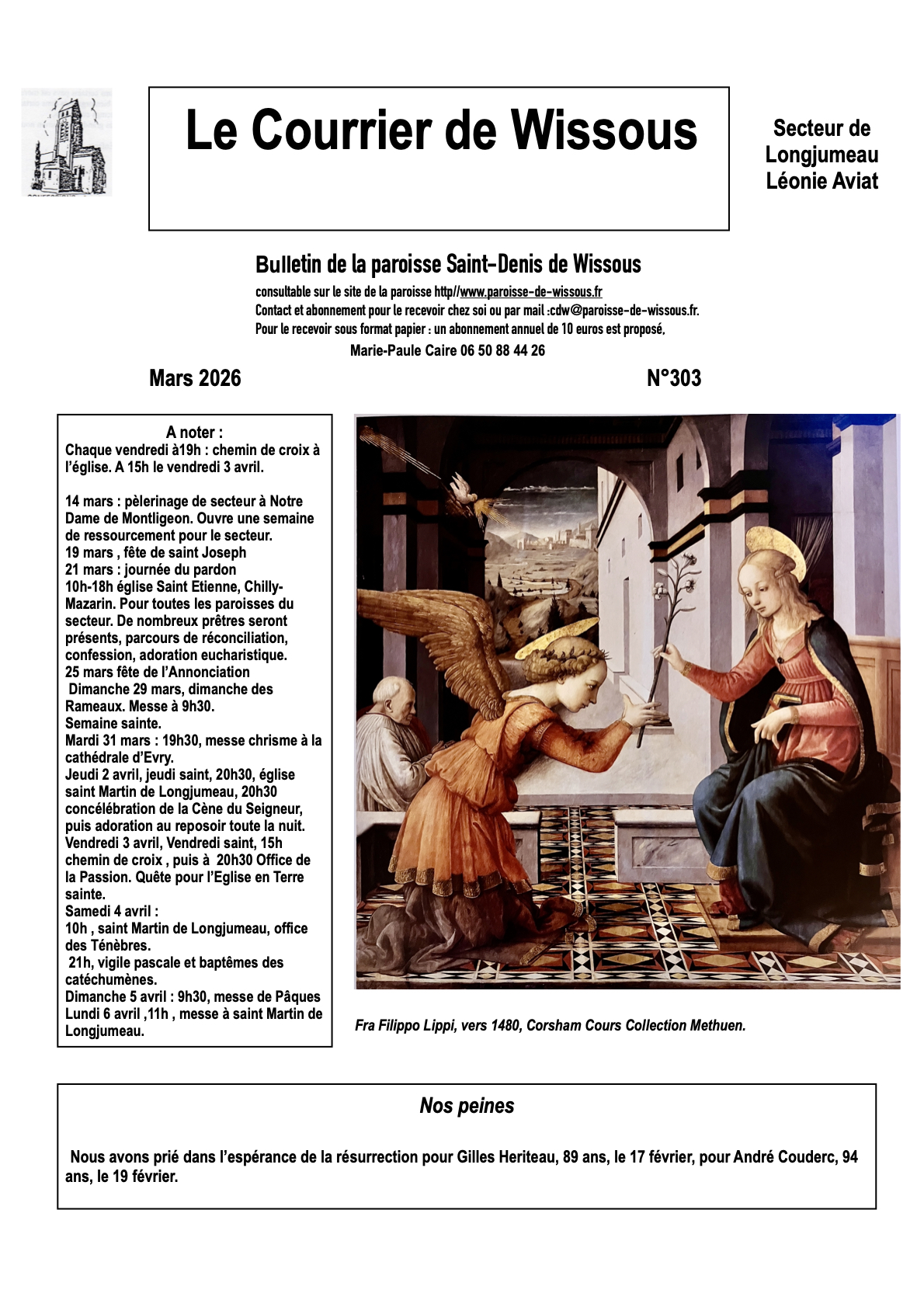 Le COURRIER DE WISSOUS est le bulletin de la paroisse Saint-Denis de Wissous.